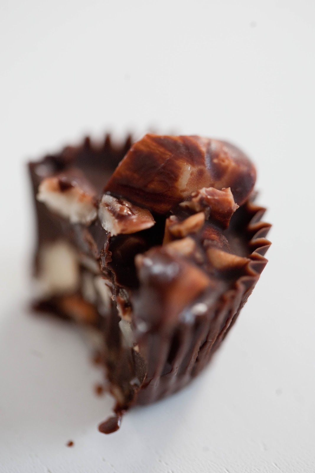 Etter å ha helt massen oppi former(jeg kjøpte konfektformer), så må de rett i frysen. Når de er klar skal de oppbevares kaldt, fordi de smelter fort pga. cocosaen.